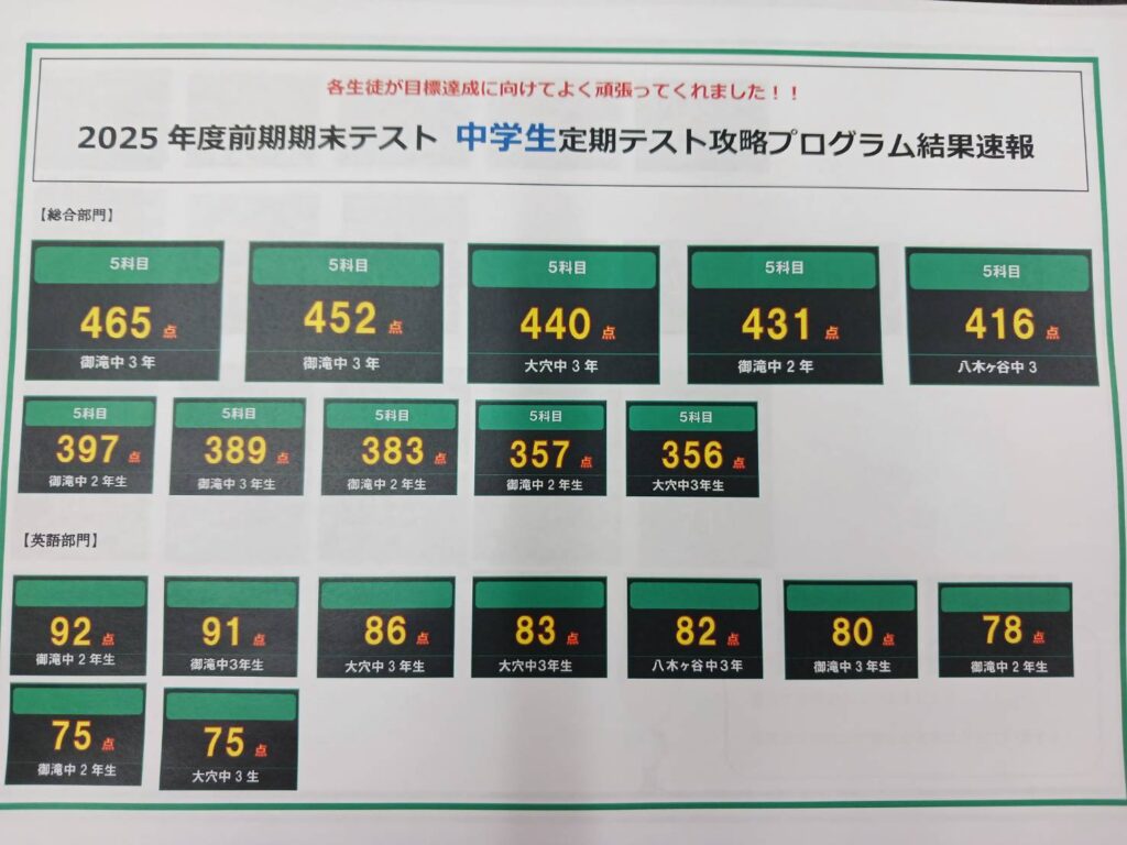 速報!!2025年度 前期期末試験の結果発表(中学生)